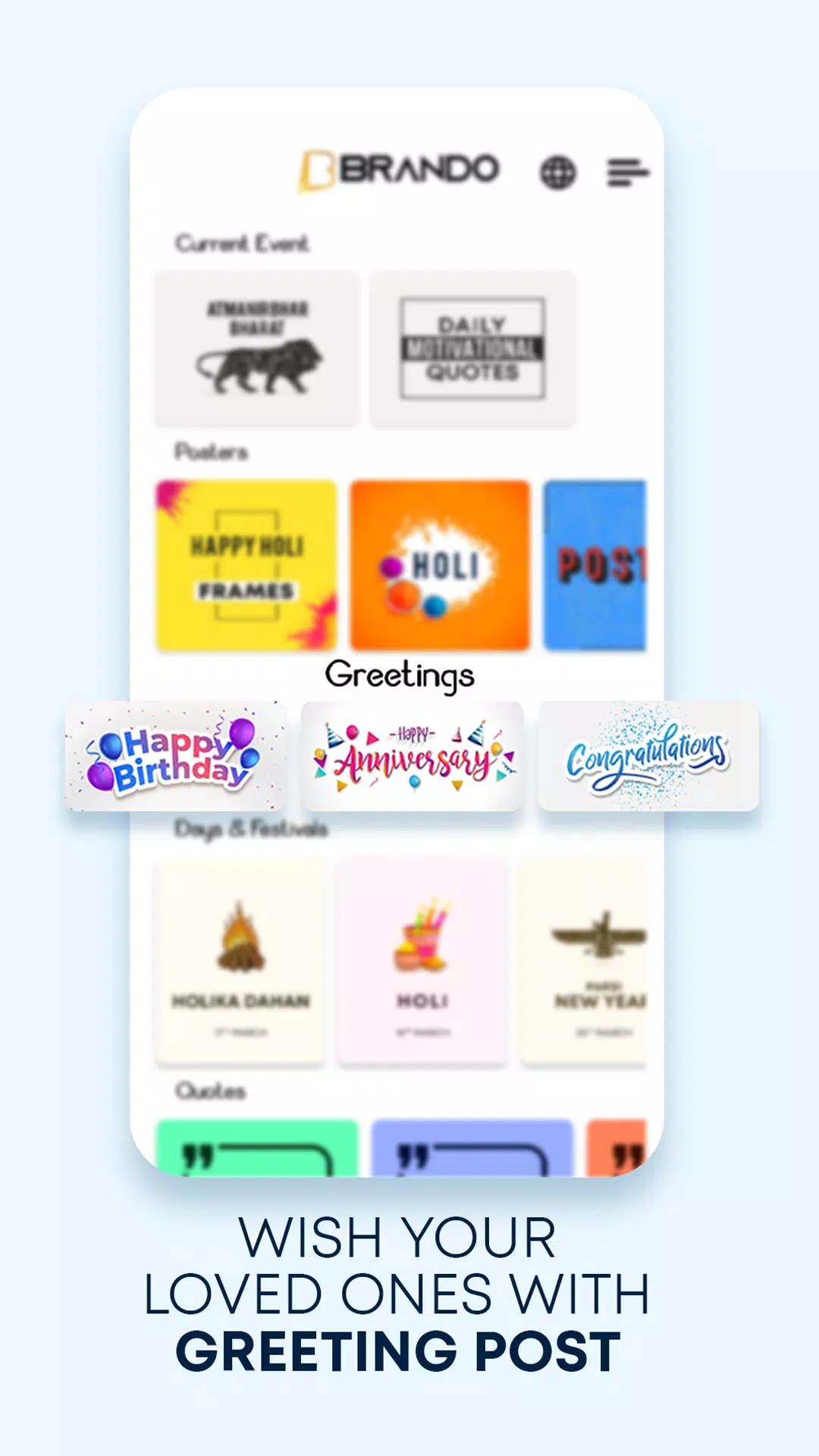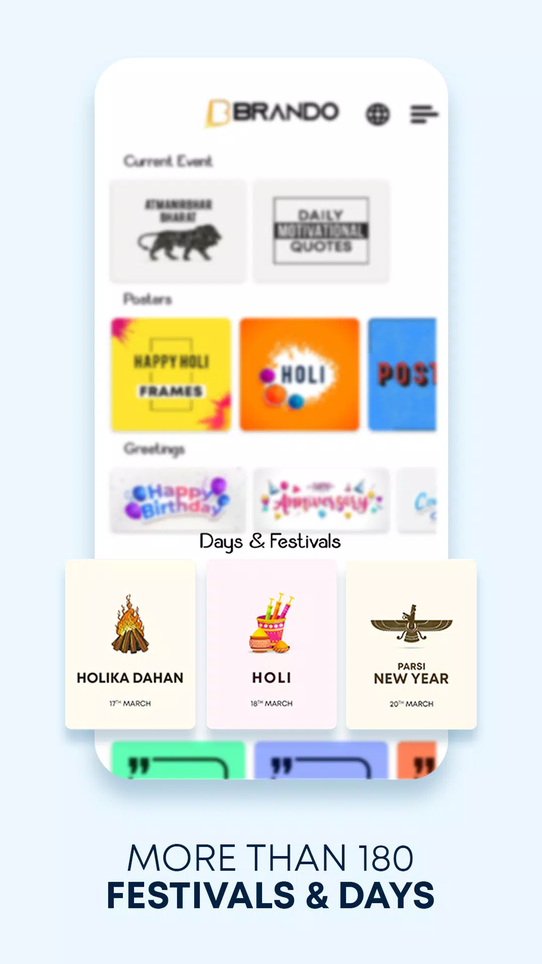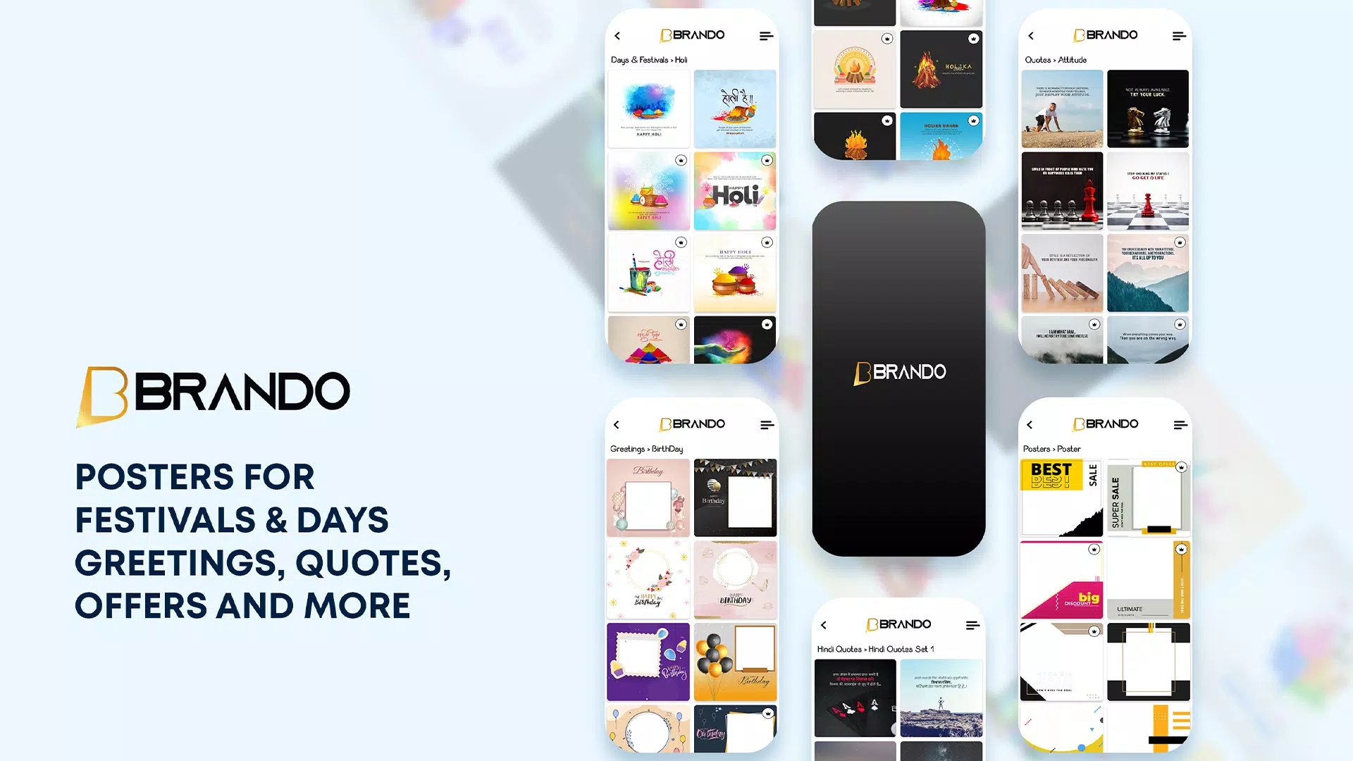 Brando es tu creador definitivo de pósters comerciales, perfecto para emprendedores, empresas e individuos que necesitan publicaciones diarias, pancartas publicitarias, diseños para festivales, tarjetas digitales, contenido de marketing y gráficos para redes sociales para aumentar la visibilidad de la marca