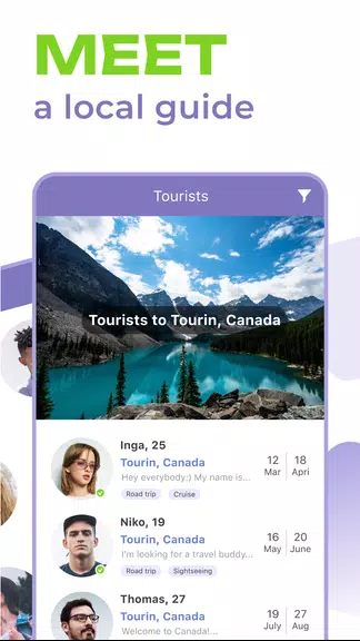 Quelques tapotements suffisent pour trouver des compagnons de voyage ou des guides locaux à votre destination. La plateforme est conçue pour la simplicité et la sécurité, garantissant une expérience fiable pour tous.