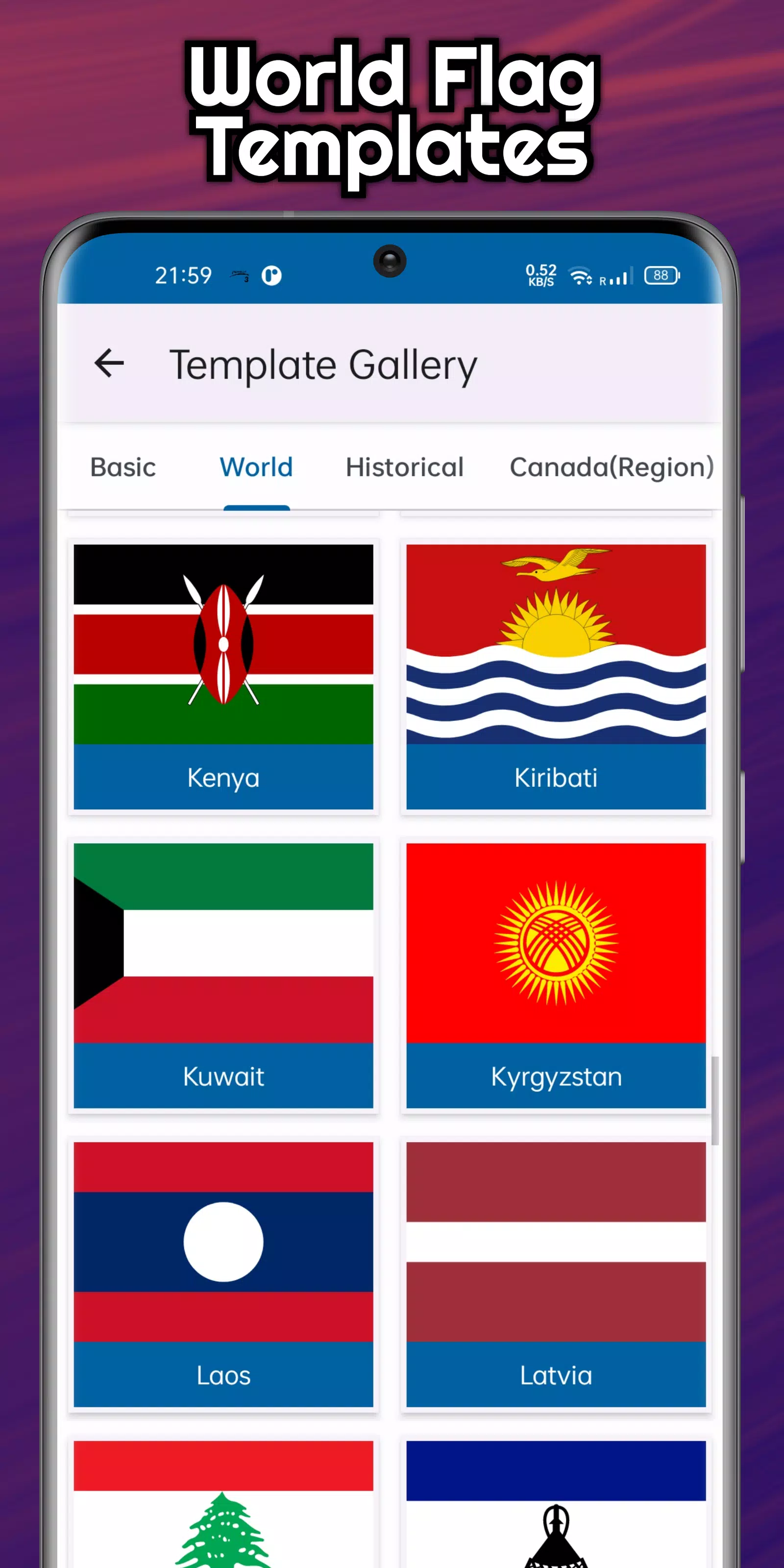 Design from Scratch or Templates: Begin with a blank canvas or pick from our extensive library of 1,000+ templates, featuring world flags, historical banners, and regional emblems.