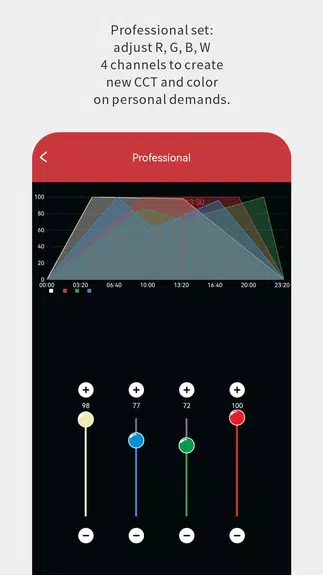 Unlock professional-grade controls with individual RGBW channel adjustment and CCT tuning. Create unlimited lighting combinations with 48 programmable time points throughout the day for perfectly tailored illumination.