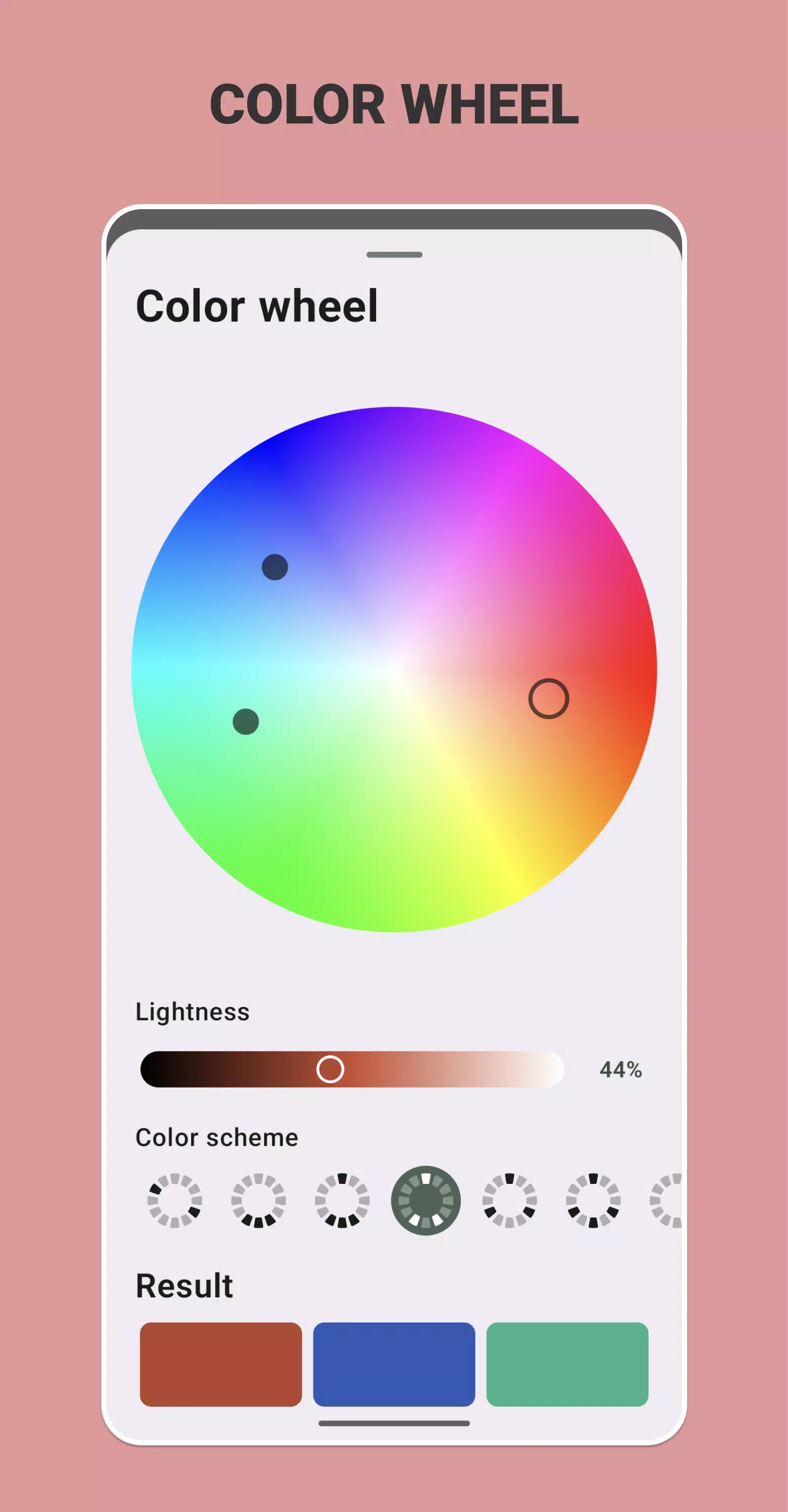 お気に入りのアクセントカラーを使って、美しいカラースキームを作成できます。 コンプリメントリー、スプリットコンプリメントリー、アナログ、トライアド、テトラッド、モノクロームといった調和の種類を、カラーホイールから簡単に発見できます。 カラーホイールを使って、色の関係性をすばやく可視化し、パレットを改善し、より豊かでバランスの取れた組み合わせを生み出しましょう。