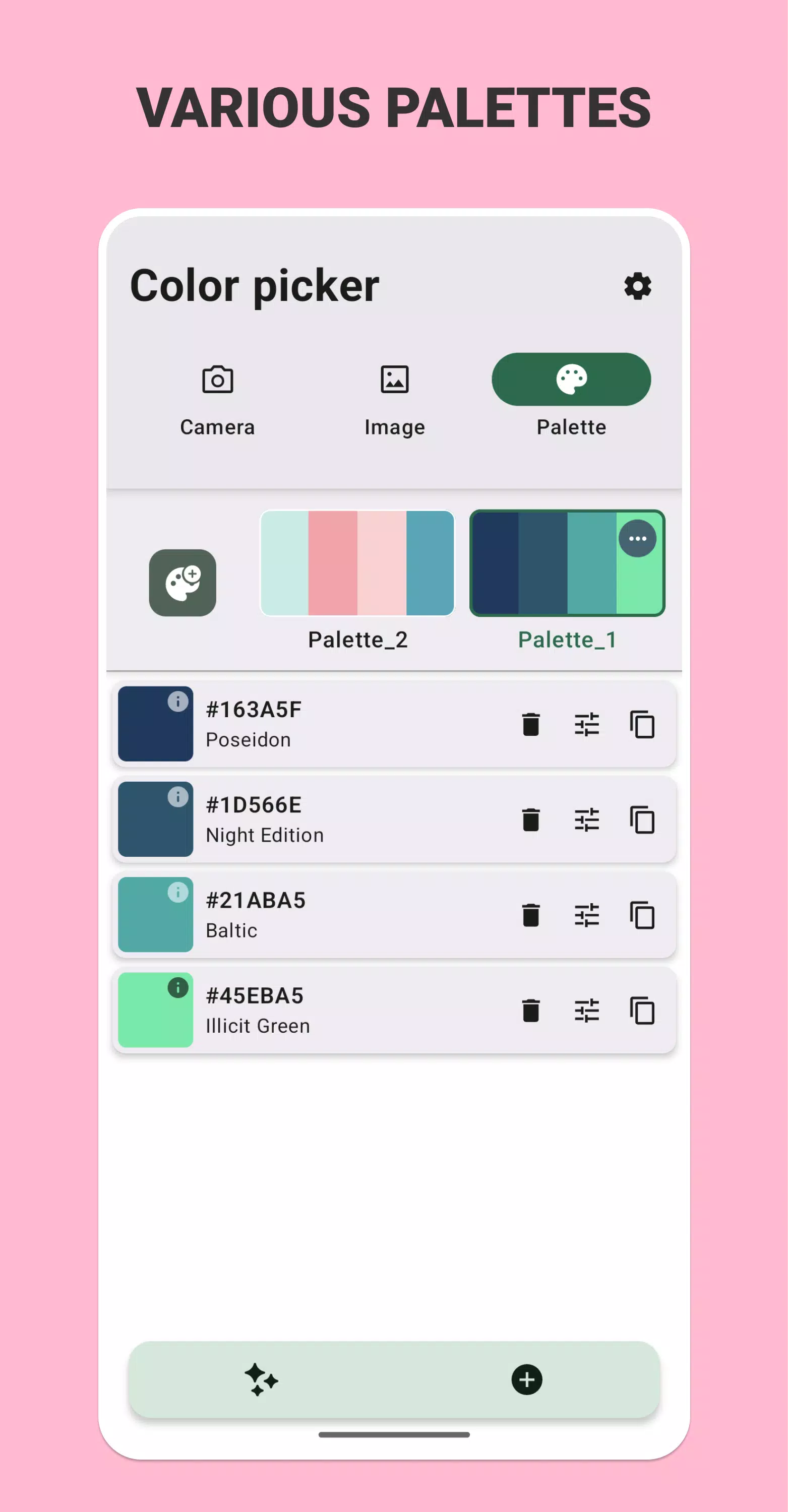 任意の写真や画像から主色を素早く抽出できます。 アプリは最も目立つ色を検出し、優先順位に基づいて整理するため、デザインのインスピレーションに必要なメインカラーテーマを簡単に取得できます。