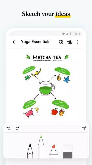 > クラウド同期により、インスピレーションが浮かんだときにいつでもすべてのデバイスからメモにアクセス可能です。