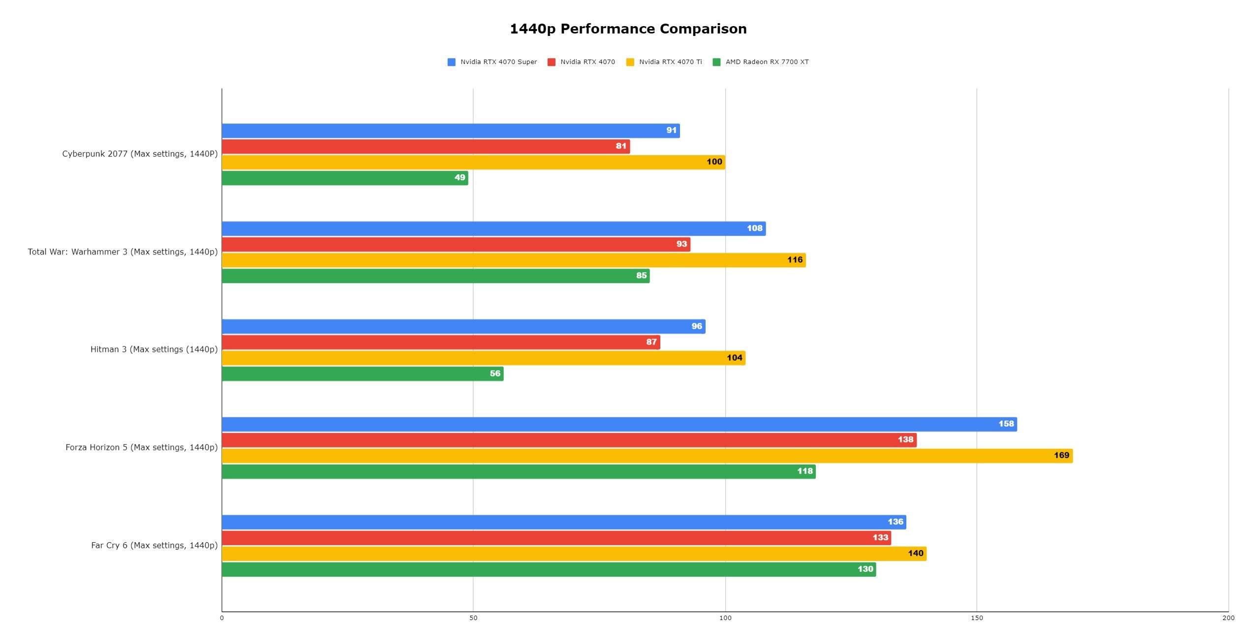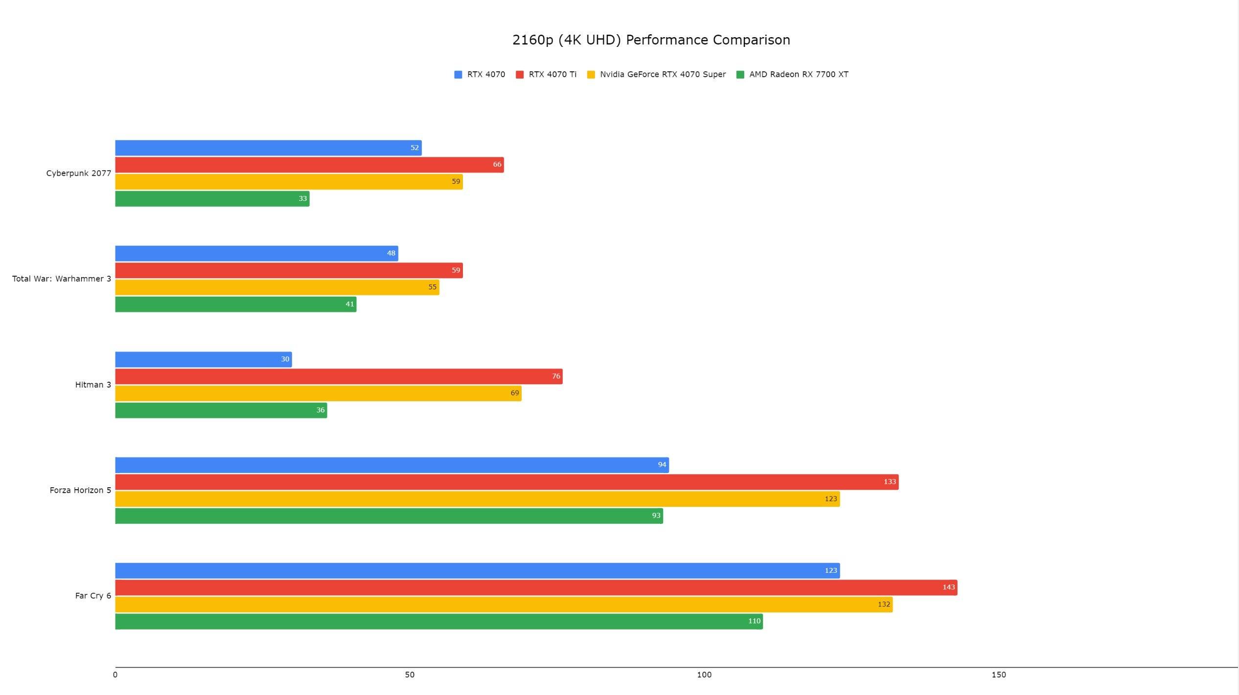 테스트 결과, 21% 더 많은 CUDA 코어(7,168개 대 5,888개) 덕분에 기존 RTX 4070에 비해 인상적인 향상을 보였습니다. 이러한 개선은 고해상도에서 12~13% 더 빠르게 실행되는 사이버펑크 2077과 4K에서 30%의 놀라운 성능 향상을 보여주는 포르자 호라이즌 5 등 까다로운 타이틀에서 빛을 발합니다.