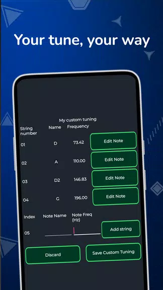 ❤ 个性化预设:可为最多7弦乐器保存自定义调音配置,支持描述性名称和频率设置。
