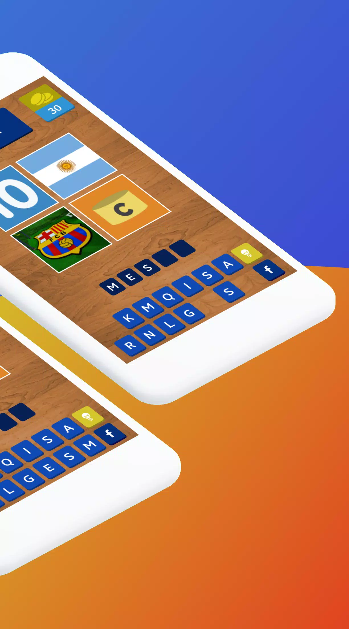 将四张图片与正确的球星名字连接起来。通过点击字母按钮组成答案,解锁下一关挑战。